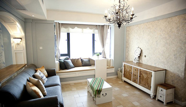 家居秉持典型的法式风格搭配原则,均为米白色,表面略带雕花,配合扶手和椅腿的弧形曲度,显得优雅矜贵,而在白色的卷草纹窗帘、水晶吊灯、落地灯、瓶插百合花的搭配下,浪漫清新之感扑面而来.